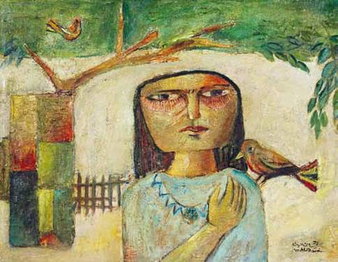 Walid Al Shami, Maryam, 1972. Painting, mixed media on board, 60 x 74 cm.