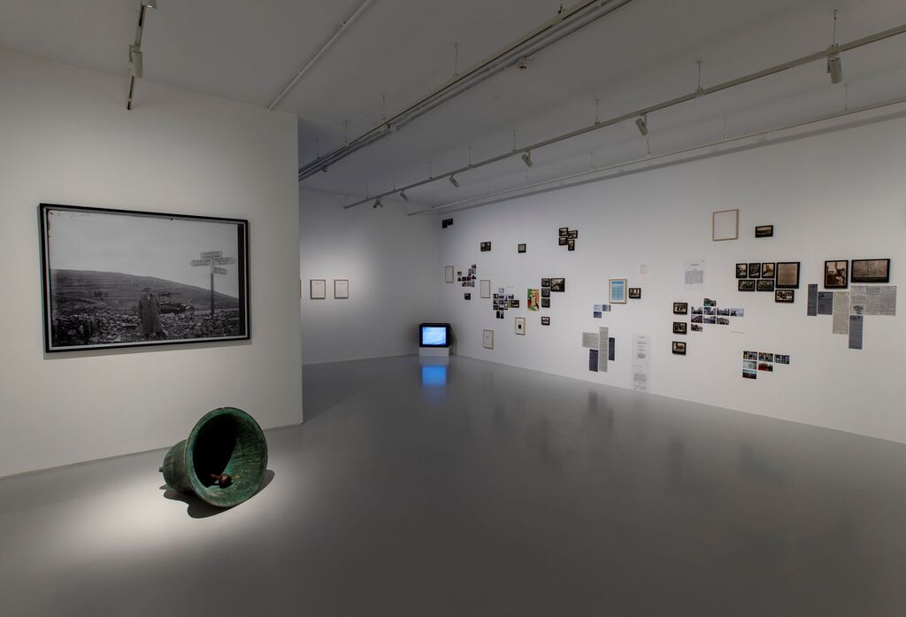 Notes for a Canon (2016) explores intertwined histories of British colonial rule in Palestine and Ireland. Conceived for the Irish Museum of Modern Art, the work is comprised of a site-specific sound work in the Royal Hospital Kilmainham cloister and an installation which includes an 1890 church bell from Acre and in Gaza (2000), drawings, photographs, and a pocket watch inscribed in Arabic and an Ottoman pocket watch from the Jaffa Gate in Jerusalem as a point of departure for the Clock Tower once at the same site. The watch takes an old tower’s lost own time tower, Dublin having its architectural tower destroyed by the British in 1922 to erect a single, standardized beacon shaped by colonial imagination. Its removal was also a direct consequence of two perceptions of time, replacing it with a single, standardized measure tied to perceptions of time.