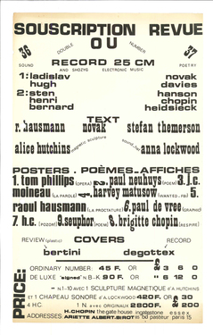 Souscription Revue OU Numéro 36-37. Poster, paper, ink, 33 x 20.3 cm.