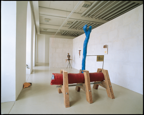 Jimmie Durham, Treff [Encounter], 1992. Sculpture, wood, iron, acrylic paint, 215 x 205 x 107 cm.