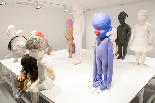 Maen Florin’s sculptures would appear to want to remain silent; often they have their eyes closed or looking off to the side, pretending not to see you. Once you’ve noticed this, you inevitably come to the conclusion that her works are ‘anthropomorphic’. They have human traits, but also some ‘inhuman’ ones; they usually have strange physical shapes – large ears, long noses, twisted mouths, closed eyes, misshapen limbs and crooked torsos… The figures stem from less cheerful fairy tales, uncomfortable dreams and mild nightmares.