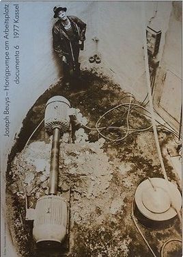 Materials: electric motors, painted and unpainted metal, plastic tubes, glass, electronics and honey